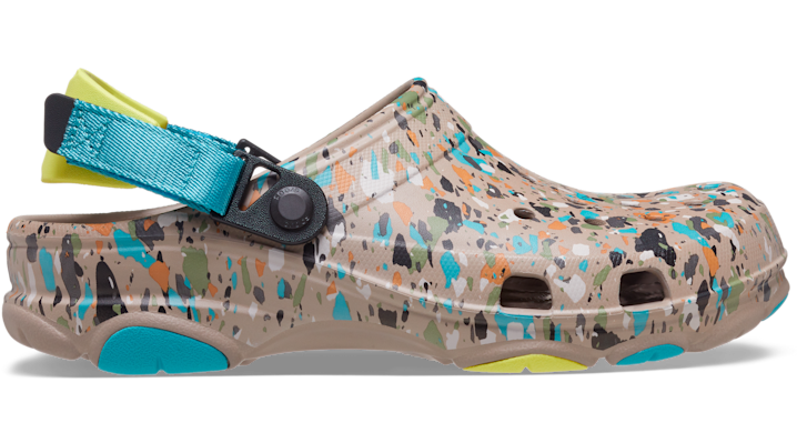 The Classic All-Terrain Terrazzo Clog is ready for travel, exploration and adventure, even in the harshest environments. This rugged clog now features a terrazzo graphic that’s inspired by the natural world. With a more rugged outsole and an adjustable turbo strap, the ground beneath your feet has never felt more surmountable. Lightweight Croslite construction makes them a practical and packable choice for any outing. It’s time to shift into all-wheel drive. Flip that strap back and go find your fun! Classic All-Terrain Terrazzo Clog Details: • Nature-inspired terrazzo graphic • Rugged lug outsoles with enhanced tread for increased traction and support • Fully molded Croslite foam uppers • Ventilation ports add breathability and help shed water • Easy to clean and quick to dry • Adjustable turbo heel straps for a snug, accommodating fit • Customizable with Jibbitz charms • Iconic Crocs Comfort: Lightweight. Flexible. 360-degree comfort.