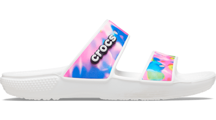 Show off your bright side in this two-strap sandal featuring unique, colorful graphics. Original Croslite foam cushion will keep you comfortably supported as the bold, solarized graphics boost your style. Classic Crocs Solarized Sandal Details: Inspired by the comfort of the iconic Classic Clog Stylish and bold solarized graphics Croslite foam construction for reliable cushioning Classic 2-strap design for a secure fit Customizable with Jibbitz charms Iconic Crocs Comfort: Lightweight. Flexible. 360-degree comfort.