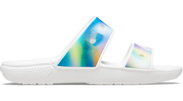 Show off your bright side in this two-strap sandal featuring unique, colorful graphics. Original Croslite foam cushion will keep you comfortably supported as the bold, solarized graphics boost your style. Classic Crocs Solarized Sandal Details: Inspired by the comfort of the iconic Classic Clog Stylish and bold solarized graphics Croslite foam construction for reliable cushioning Classic 2-strap design for a secure fit Customizable with Jibbitz charms Iconic Crocs Comfort: Lightweight. Flexible. 360-degree comfort.