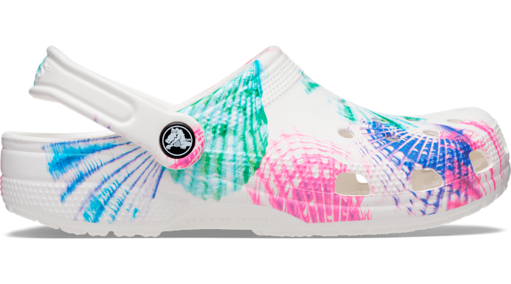 Energetic summer graphics combine with Iconic Crocs comfort combines in the Classic Cyber Beach Clog. Enjoy dynamic and bold beach-themed graphics while enjoying the iconic comfort and do-it-all style that you’re sure to fall deeper in love with day after day. Featuring vibrant photoreal seashell or underwater graphics. It’s the stylish clog that you're sure to fall deeper in love with day after day. Classic Cyber Beach Clog Details: Bold photoreal graphics on the uppers Incredibly light and fun to wear Easy to clean and quick to dry Pivoting heel straps for a more secure fit Customizable with Jibbitz™ charms Iconic Crocs Comfort™: Lightweight. Flexible. 360-degree comfort.
