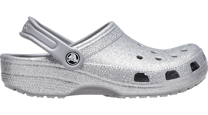 Original. Versatile. Comfortable. The iconic clog that started a comfort revolution around the world, now with adorable built-in glitter all over! It's the irreverent, go-to comfort shoe that you're sure to fall deeper in love with day after day. Crocs Classic Clogs feature lightweight, cushioned construction and offer an ongoing invitation to be comfortable in your own shoes. Sparkle on! Classic Glitter Clog Details: Incredibly light and fun to wear Ventilation ports add breathability and help shed water and debris Easy to clean and quick to dry Pivoting heel straps for a more secure fit Customizable with Jibbitz™ charms Iconic Crocs Comfort™: Lightweight. Flexible. 360-degree comfort.