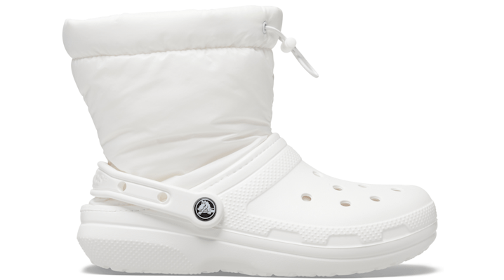 Original. Puffed. Comfortable. The Classic that started a comfort revolution around the world is a do-it-all style that you’re sure to fall deeper in love with day after day. Boot up in a new lined version featuring a lined nylon funnel neck so you get the best of both worlds — Classic with a boot look. Lifelong wardrobe staples beloved by millions of all ages, Crocs Classic Clogs offer lightweight comfort, a color for every personality, and an ongoing invitation to be comfortable in your own shoes. Classic Lined Neo Puff Boot Details: The Classic Lined Clog with a loose nylon funnel neck, giving the appearance of a boot Bungee cord & lock at the cuff Incredibly light and fun to wear Easy to clean and quick to dry Customizable with Jibbitz™ charms Dual Crocs Comfort™: Blissfully supportive. Soft. Cradling comfort.