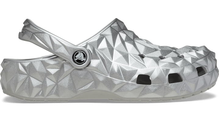 A geometric molded design with metallic treatment provides extra style to this version of the iconic clog. The unique design and treatment help you show off your creative spirit, and Croslite™ foam construction keeps them light and easy to wear. Grounded in comfort, spiked with personality. Classic Metallic Geometric Clog Details: • Geometric molded design • Metallic treatment • Incredibly light and fun to wear • Ventilation ports add breathability and help shed water and debris • Easy to clean and quick to dry • Pivoting heel straps for a more secure fit • Customizable with Jibbitz™ charms • Iconic Crocs Comfort™: Lightweight. Flexible. 360-degree comfort.