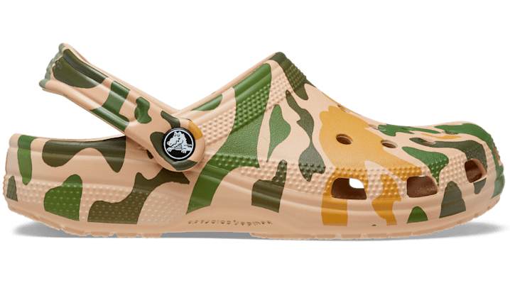 Original. Versatile. Comfortable. It’s the iconic clog that started a comfort revolution around the world, now in an adventurous new camo print. Crocs Classic Clogs offer lightweight Iconic Crocs Comfort™, a print for every personality, and an ongoing invitation to be comfortable in your own shoes. Classic Printed Camo Clog Details: Adventurous new camo print Incredibly light and fun to wear Water-friendly and buoyant; weighs only ounces Ventilation ports add breathability and help shed water and debris Easy to clean and quick to dry Pivoting heel straps for a more secure fit Customizable with Jibbitz™ charms Iconic Crocs Comfort™: Lightweight. Flexible. 360-degree comfort.