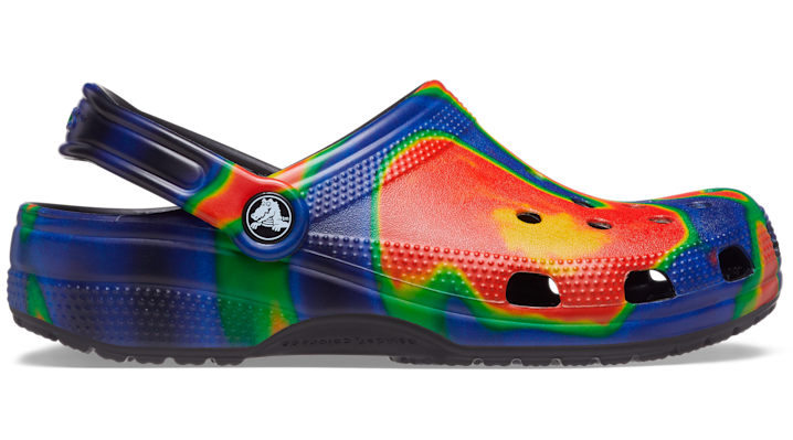 Bright graphics combine with iconic Crocs comfort in the Classic Solarized Clog. Featuring a unique, bold graphic, it’s the fun, stylish clog that you're sure to fall deeper in love with day after day. Grounded in comfort, spiked with personality. Classic Solarized Clog Details: Fun, solarized graphics on the uppers Incredibly light and fun to wear Ventilation ports add breathability and help shed water and debris Easy to clean and quick to dry Pivoting heel straps for a more secure fit Customizable with Jibbitz charms Iconic Crocs Comfort: Lightweight. Flexible. 360-degree comfort.