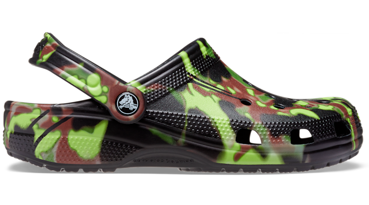 Spray paint camo graphics provide extra style to this version of the iconic clog. This updated version of the camo aesthetic gives these clogs a sporty, modern feel, and Croslite™ foam construction keeps them light and easy to wear. Grounded in comfort, spiked with personality. Classic Spray Camo Clog Details: • Sporty spray camo graphic • Incredibly light and fun to wear • Ventilation ports add breathability and help shed water and debris • Pivoting heel straps for a more secure fit • Customizable with Jibbitz™ charms • Iconic Crocs Comfort™: Lightweight. Flexible. 360-degree comfort.