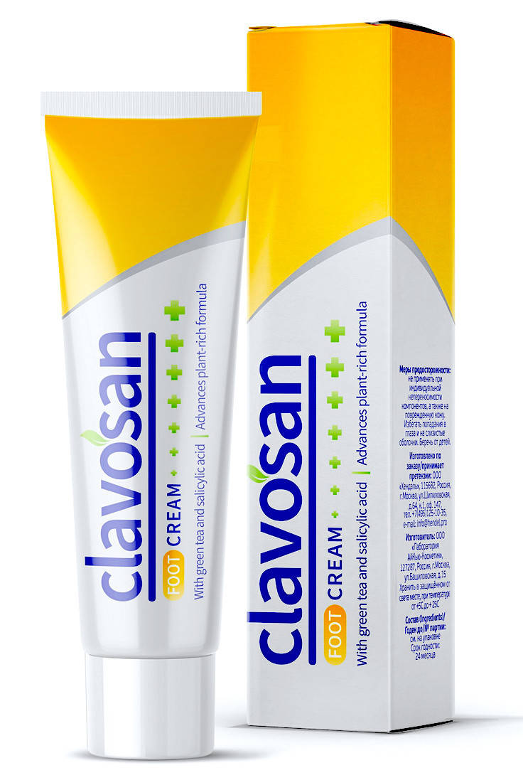 Профессиональный крем Clavosan – это эффективное и безопасное средство для красоты и здоровья кожи ступней и ногтей. Активные компоненты чайного дерева и салициловой кислоты обладают выраженными антисептическими и антибактериальными свойствами, помогают избавиться от неприятного запаха и ощущения дискомфорта. Благодаря натуральному составу средство бережно воздействует на кожу, не вызывая аллергической реакции или раздражения.