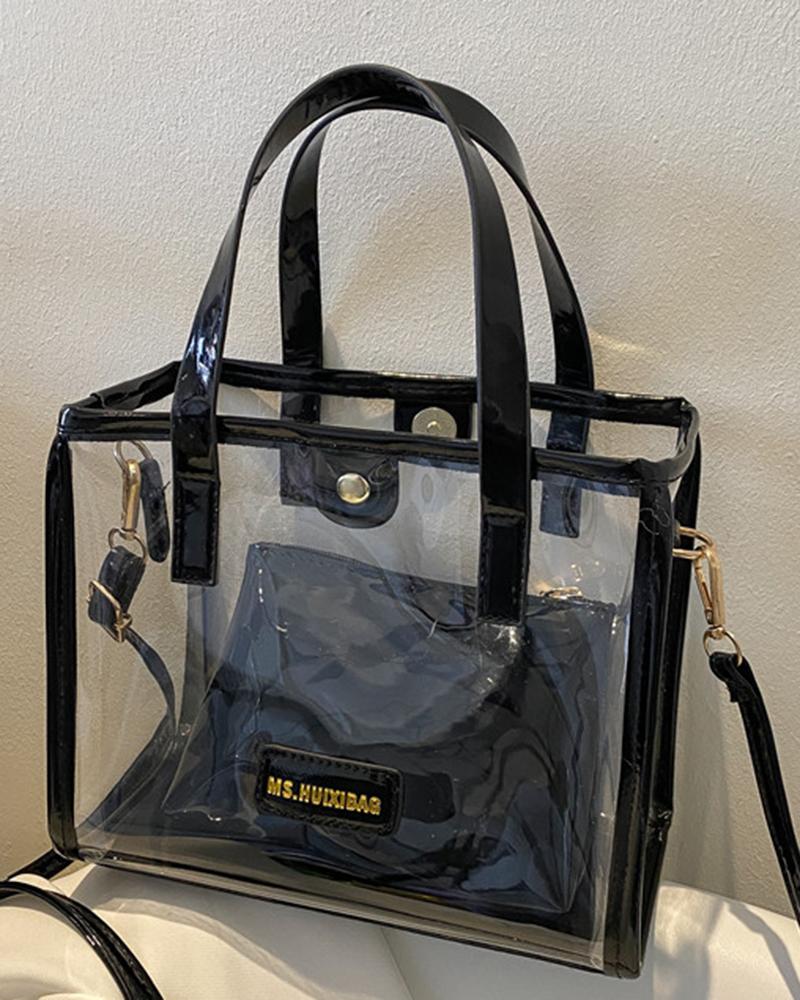 Clear Large Capacity Shoulder Handbag With Inner Pouch, Black