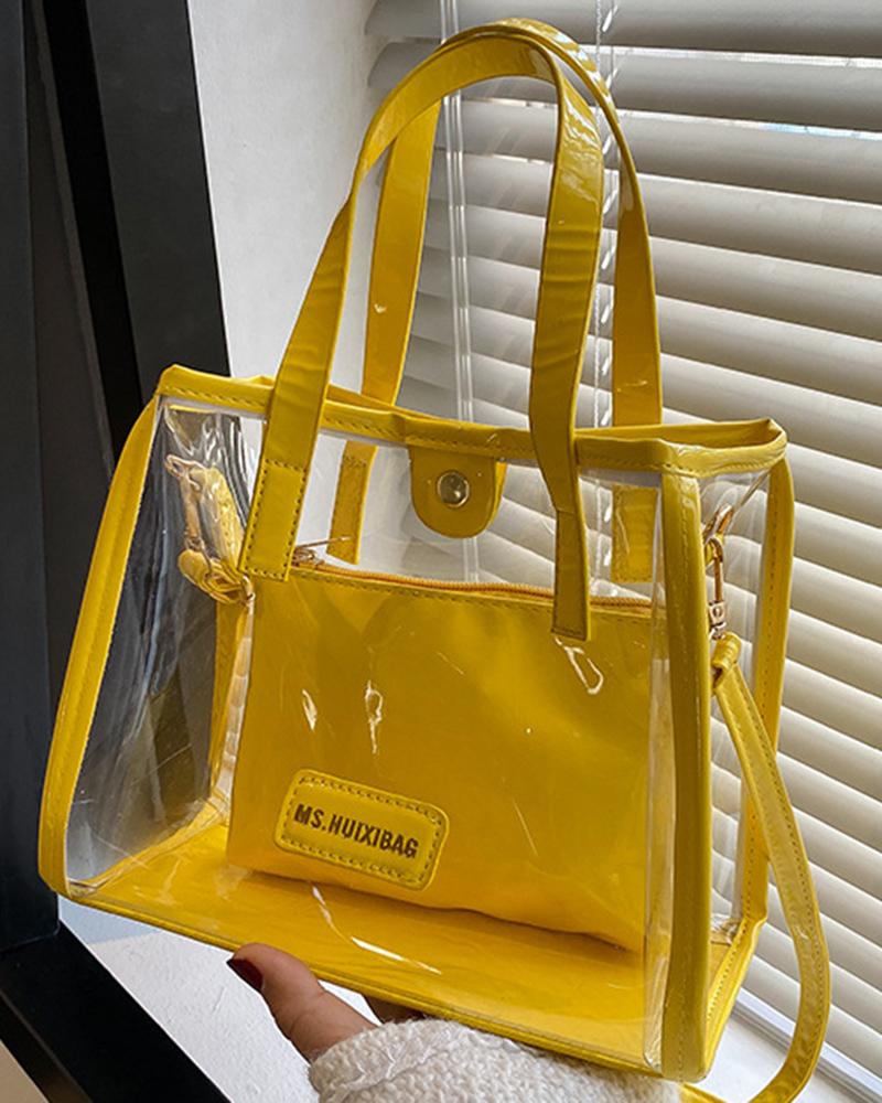 Clear Large Capacity Shoulder Handbag With Inner Pouch, Yellow