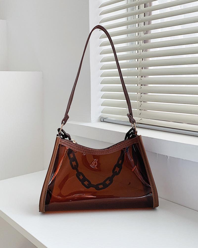 Clear Pastel Chain Strap Square Shoulder Bag, Coffee