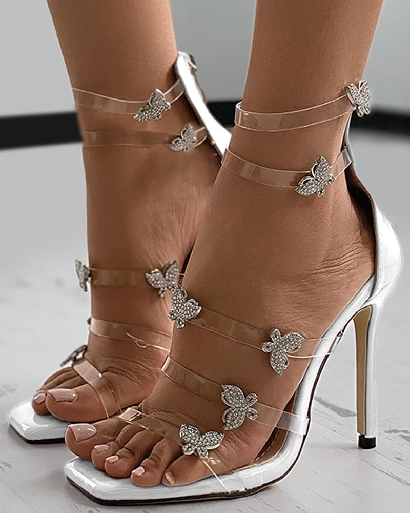 Clear Perspex Butterfly Pattern Stiletto Heel, White