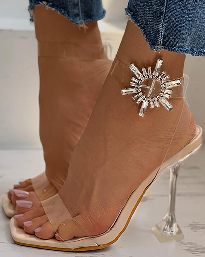 Clear Perspex Sun Pattern Studded Pyramid Heels, Beige
