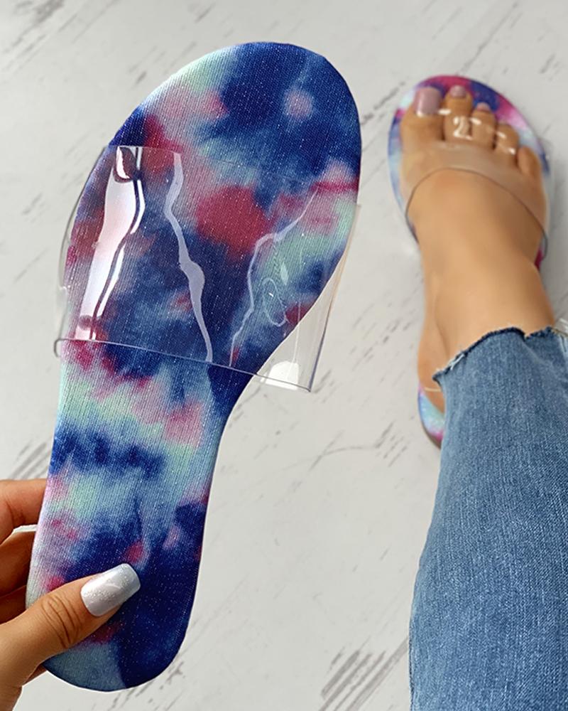 Clear Perspex Tie Dye Pattern Slider Sandals, Blue