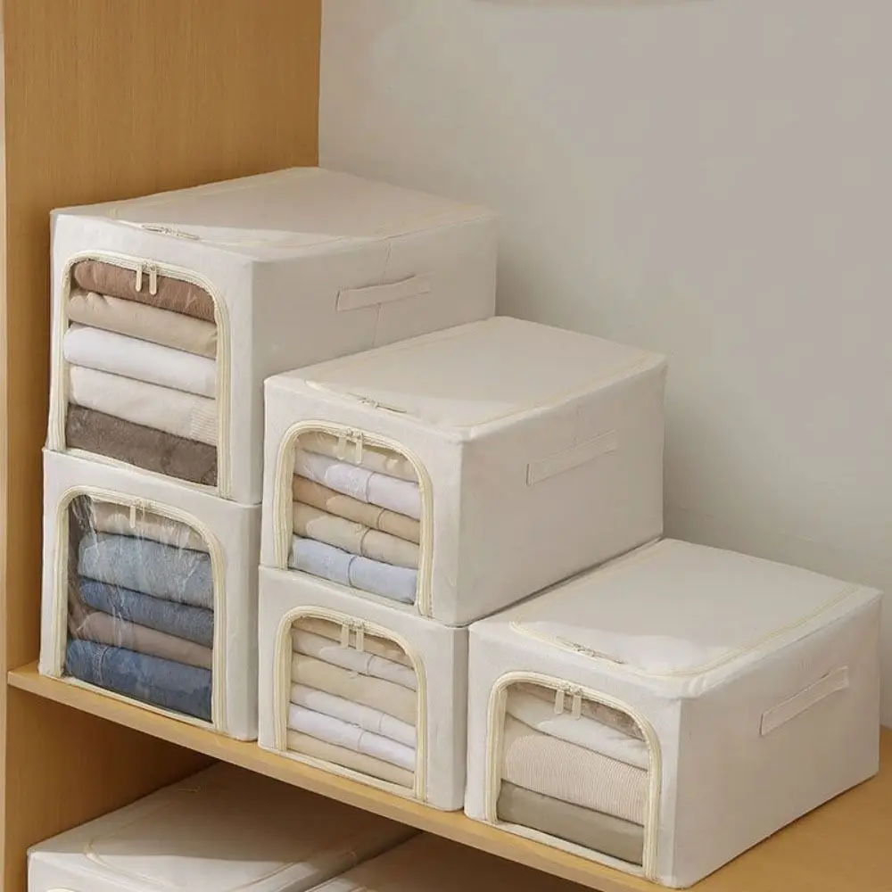 Clear Window Steel Frame Storage Box Foldable Large Capacity Clothes Storage Box Stackable Space Saving