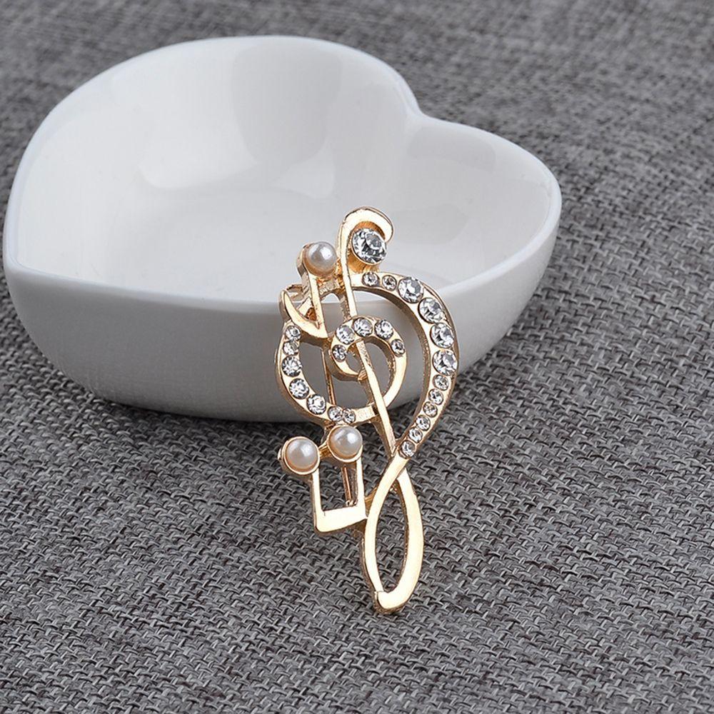 Clip for Girl Dress Accessories Musical Note Brooch Pins Pearl Scarf Buckle Crystal Rhinestone