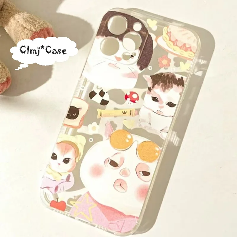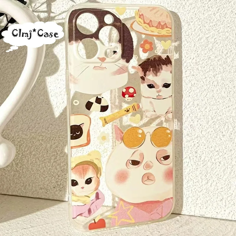 Clmj Cute Cat Kitten Phone Case For iPhone 13 Mini 12 11 14 Plus 15 Pro Se 2020 XR X XS Max 7 8 Soft Silicone Protective Cover