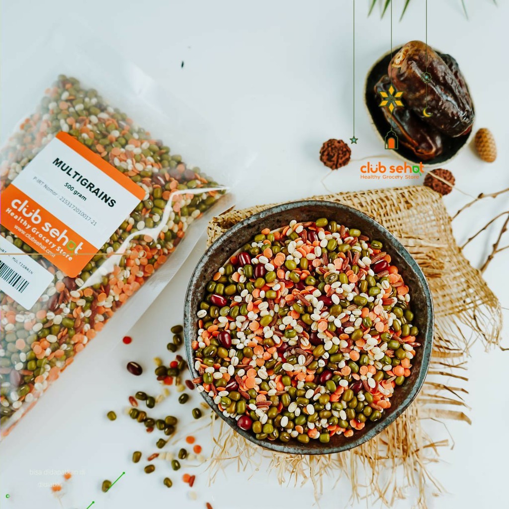 Multigrain merupakan campuran dari beberapa jenis polong - polongan ( Lentils, Mungbean, Pearl Barley, Adzuki Bean dan Beras Merah ) yang berfungsi sebagai pengganti protein hewani.sangat cocok untuk vegetarian atau vegen