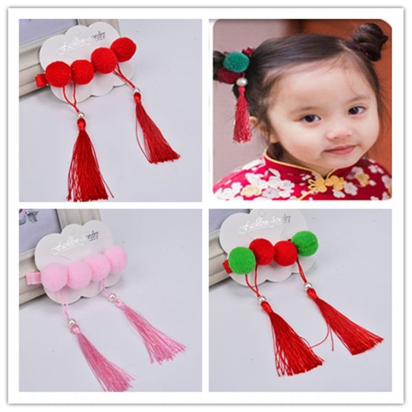ncixz antique girls tassel hair accessories headdress rubber ball headdress pin fur ball hair accessories hanfu cheongsam accessoriessmall g, Slivery;white