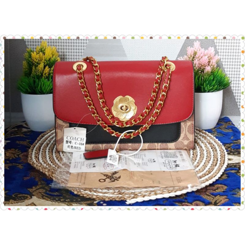 Bahan kulit sintetis, tali panjang kombinasi rantai, 2 ruang