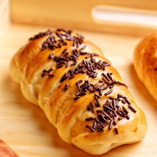 Roti dengan isian pisang dan taburan meses coklat diatasnya