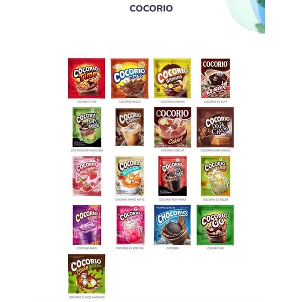 Cocorio adalah minuman serbuk instant yang dapat disajikan dengan berbagai cara seperti dihidangkan bersama dengan ES, dan dihidangkan dengan hangat atau tanpa menggunakan ES.