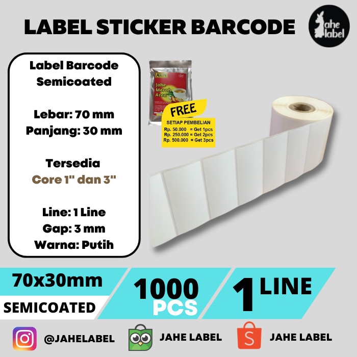 Code548 Sticker Label Barcode 70X30 Mm Semicoated Label 70 X 30 Mm 1000 Pcs