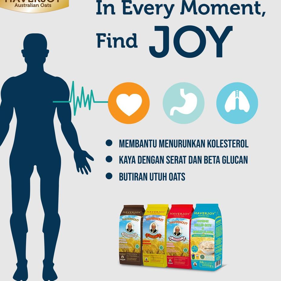 Haverjoy Quick Cooking Oats dibuat dari 100% Australian Oats,. Nikmati manfaat alami oat yang kaya dengan serat larut pangan. Serat larut dapat membantu mengontrol kolesterol dalam darah, lemak jenuh, dan berat badan.