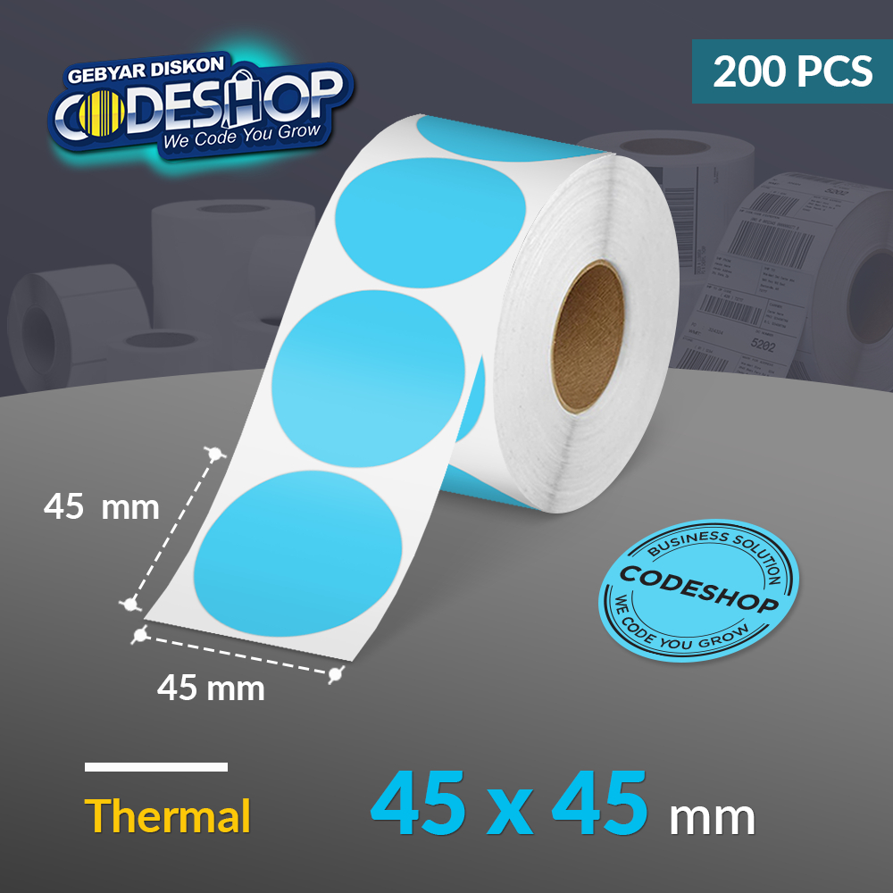 Codeshop Label Bulat Thermal 45 x 45 mm 1 Line Stiker Printer Barcode Core 1 Inch Isi 200 Pcs