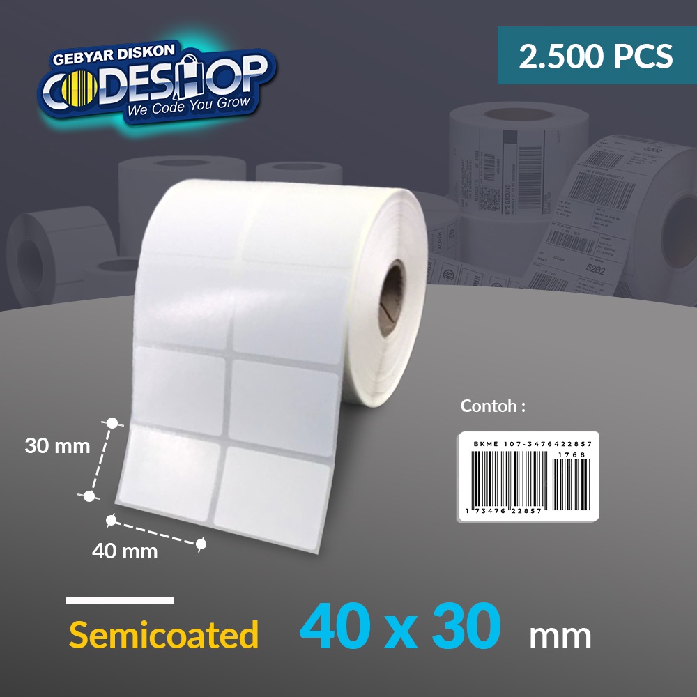 Codeshop Label Semicoated 40 x 30 mm 2 Line Stiker Printer Barcode Core 1 Inch isi 2500 Pcs