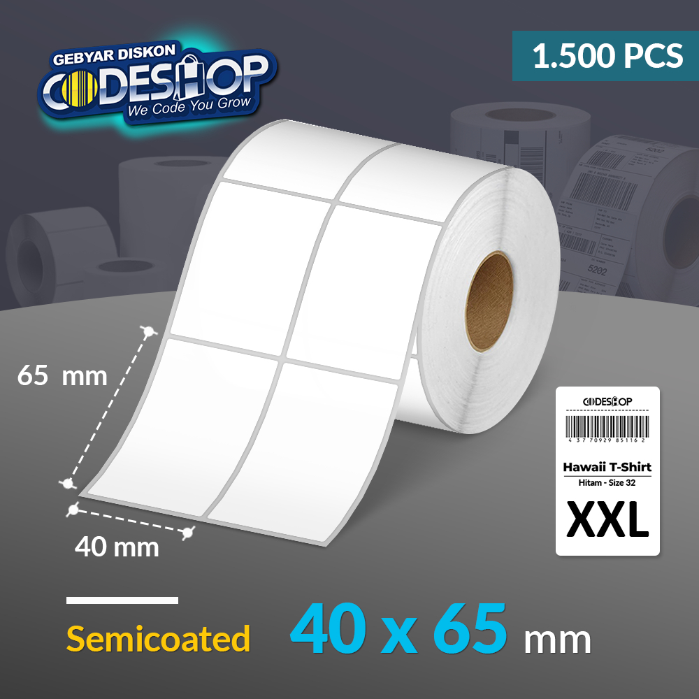Codeshop Label Semicoated 40 x 65 mm 2 Line Stiker Printer Barcode Core 1 Inch Isi 1.500 Pcs