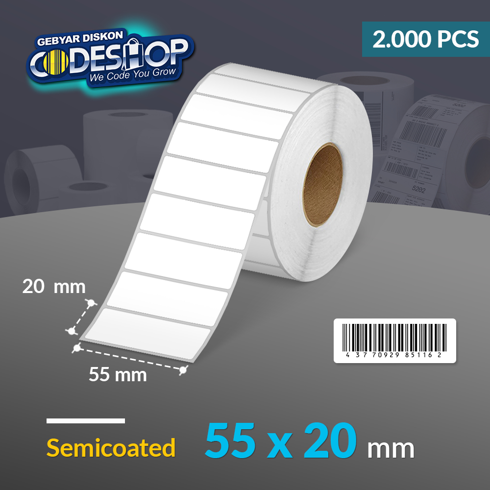 Codeshop Label Semicoated 55 x 20 mm 1 Line Core 1 Inch Isi 2.000 Pcs Stiker Printer Barcode