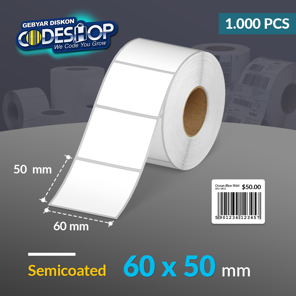 Codeshop Label Semicoated 60 x 50 mm 1 Line Stiker Printer Barcode Core 1 Inch isi 1000 Pcs