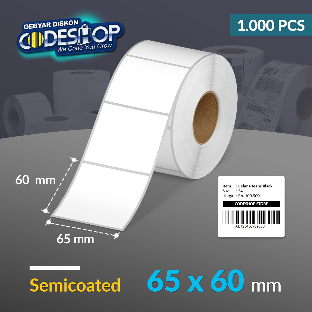 Codeshop Label Semicoated 65 x 60 mm 1 Line Stiker Printer Barcode Core 1 Inch Isi 1000 Pcs