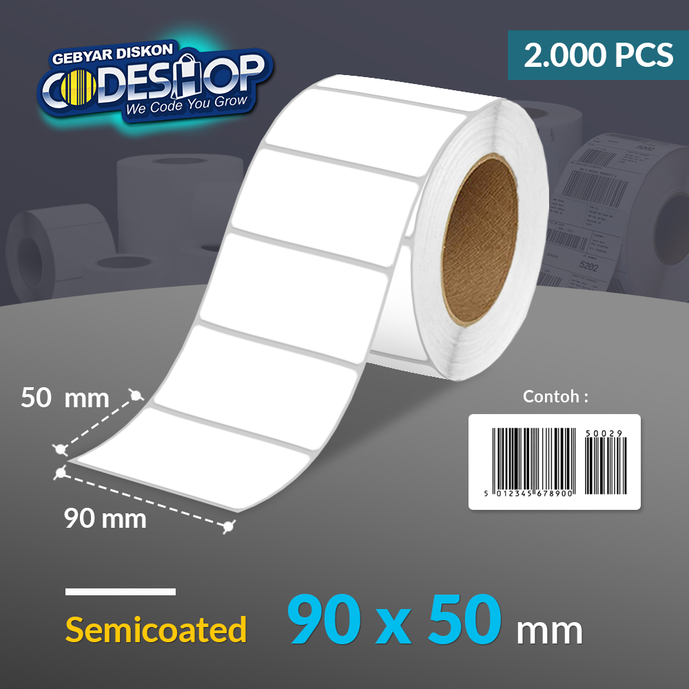 Codeshop Label Semicoated 90 x 50 mm 1 Line Stiker Printer Barcode Core Besar 3 Inch Isi 2000 Pcs