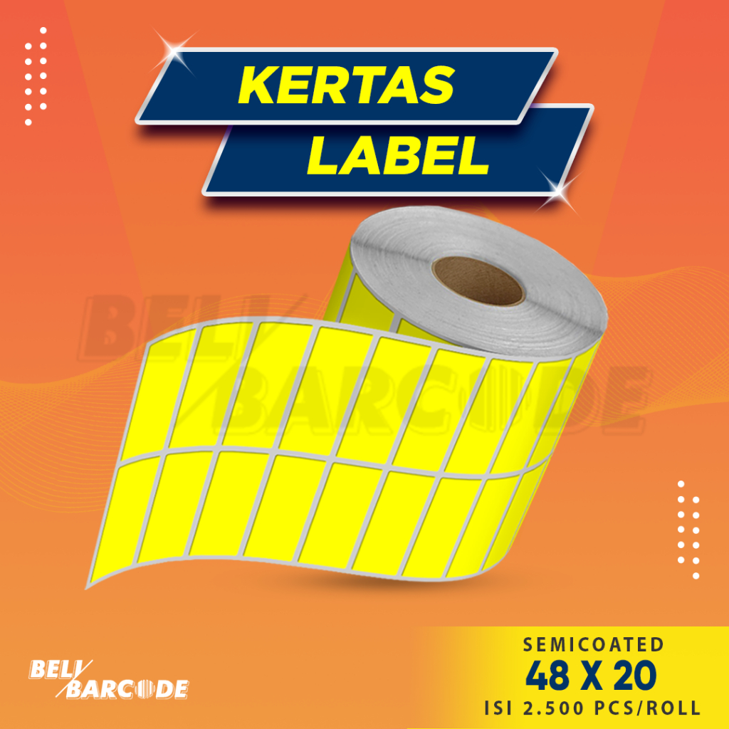 Codeshop Label Stiker Semicoated 48x20 mm 2 Line Kuning Stiker Printer Barcode 2500 Pcs