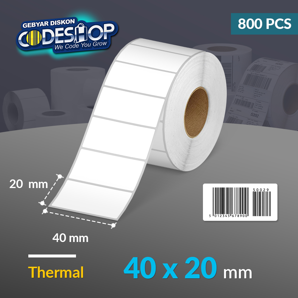 Codeshop Label Thermal 40 x 20 mm 1 Line Stiker Printer Barcode Core 1 Inch Isi 800 Pcs