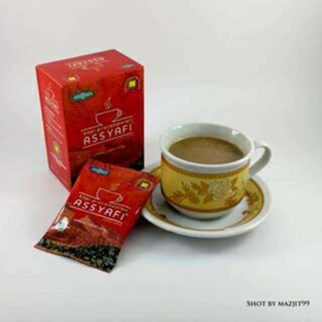 Assyafi merupakan kopi percampuran premix coffee dengan komposisi kopi, krimer nabati, gula aren.