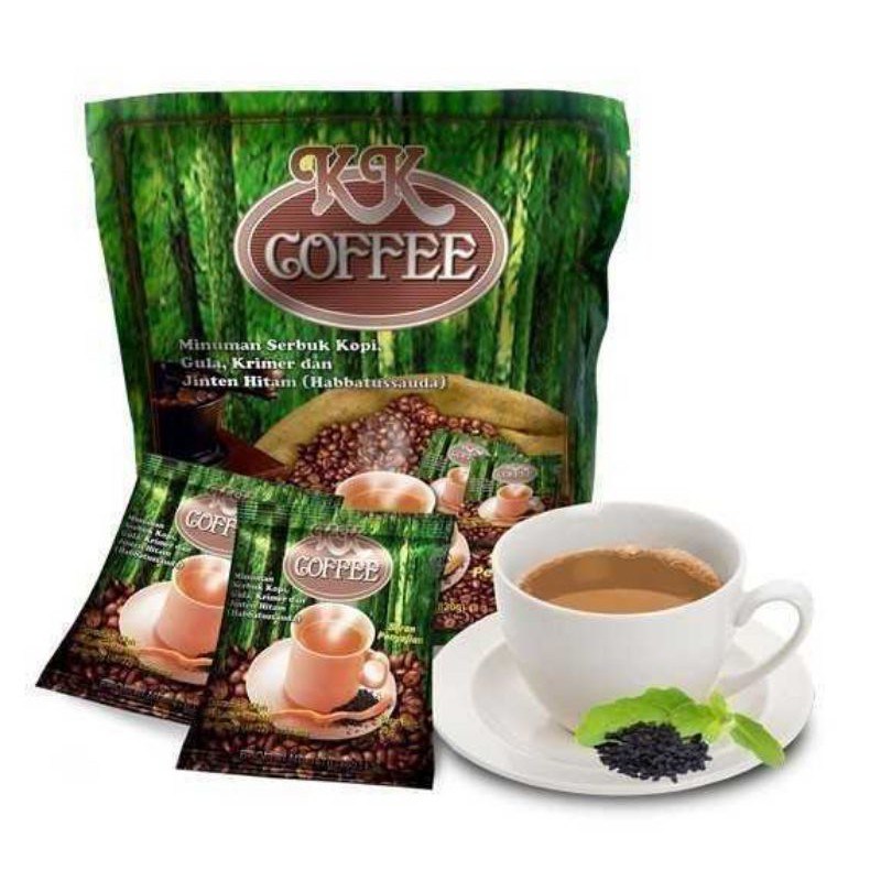 KK Coffee merupakan pilihan tepat penggemar kopi karena tidak hanya menyajikan kenikmatan kopi, namun disaat yang sama ada banyak manfaat yang bisa anda dapatkan lebih dari sekedar kopi biasa. KK Coffee mengandung Habbatusauda (Jinten Hitam) yang bermanfaat untuk kesehatan tubuh. Habbatusauda telah lama dikenal sebagai herbal yang dapat memelihara bahkan mengatasi berbagai masalah kesehatan, karena mengandung banyak nutrisi seperti seng, asam linoleic, asam oleat, kalsium, kalium, zat besi, vitamin A, B, dan C, Omega 3 dan omega 6 dan berbagai senyawa fitokimia sehingga sangat membantu dalam meningkatkan kekebalan tubuh, meningkatkan stamina, melancarkan sirkulasi darah, meningkatkan konsentrasi dan daya ingat.