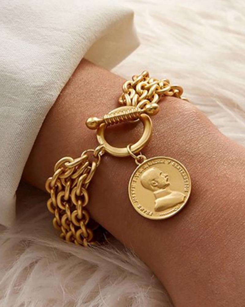 Coin Pattern Multi Chain Strap Bracelet, Gold