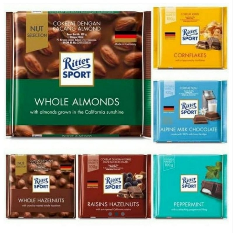 RITTER SPORT Alpine Milk Chocolate 100 gr hadir dengan rasa Alpine Milk Chocolate untuk melengkapi waktu luang dan santai bersama teman lebih menyenangkan. Terbuat dari paduan 30% cocoa dan 100% susu murni dari Pegunungan Alpen yang diolah secara seksama untuk menghasilkan coklat bar dengan kualitas rasa premium. Datang dengan bentuk potongan bar berukuran kecil yang memudahkan saat dimakan. Kombinasi rasa coklat dan susu dengan manis yang pas menciptakan rasa nikmat yang membuat Anda ketagihan. Tersedia dalam kemasan pack 100gr yang praktis di bawa dan dikonsumsi kapan dan di mana saja.