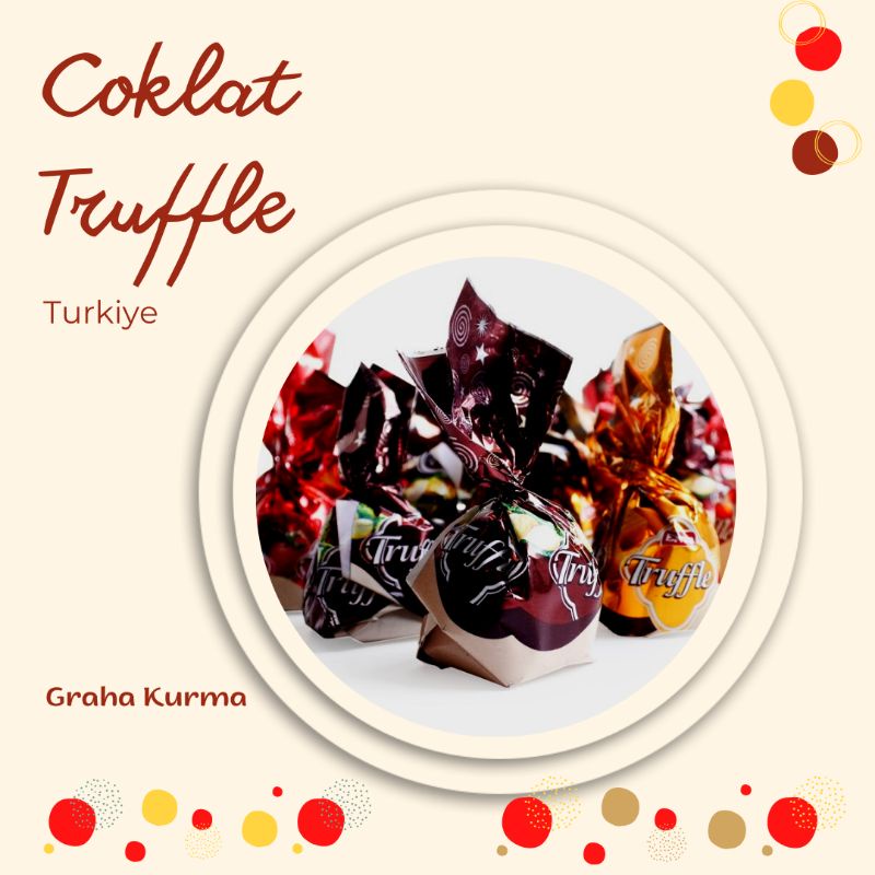 Coklat Truffle berasal dari Turki, rasanya enak, citarasa tinggi. Biasa juga dijadikan oleh-oleh kepulangan umroh dan haji. Karena memang coklat ini juga banyak ditemukan di Saudi.