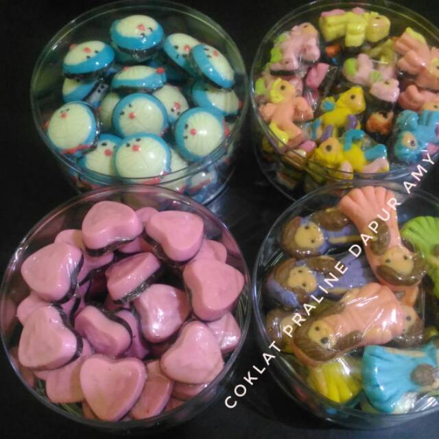 Coklat praline dapur amy dibuat dengan karakter yang unik dan lucu2, coklatnya enak tidak pahit dan tidak eneg