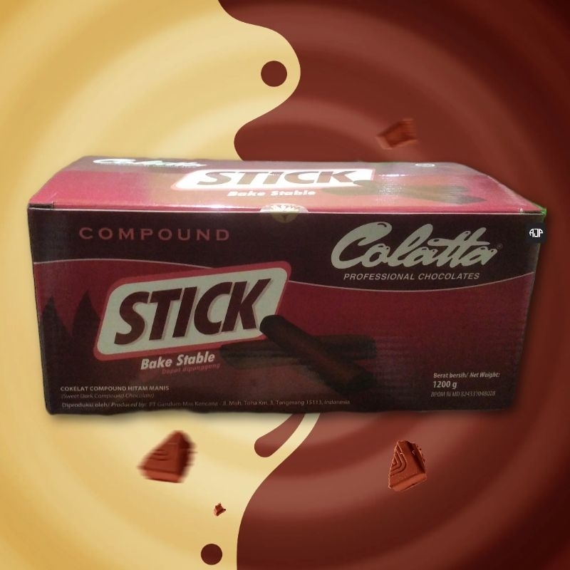 Colatta Dark Compound Stick adalah cokelat hitam berbentuk tongkat/stick yang tahan panggang, cocok untuk berbagai aplikasi pastry, seperti isian croissant, dekorasi kue, dan hiasan dessert. Cokelat ini memiliki rasa cokelat yang pekat dan kuat, dengan kombinasi rasa pahit dan manis yang seimbang.