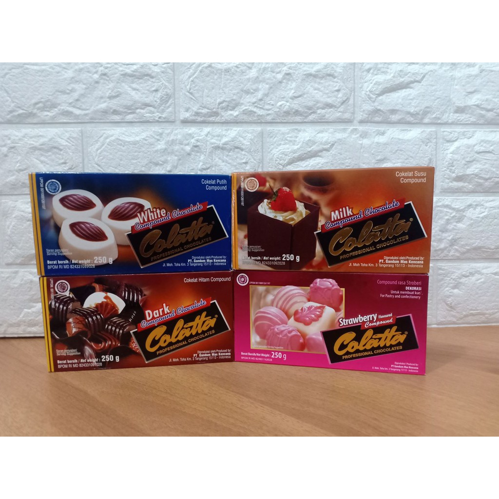 Colatta Compound Chocolate diformulasikan secara khusus unduk penanganan coklat yang mudah dan hasil yang terbaik.Cocok untuk hiasan kue,dicetak,diserut,isian kue dll.