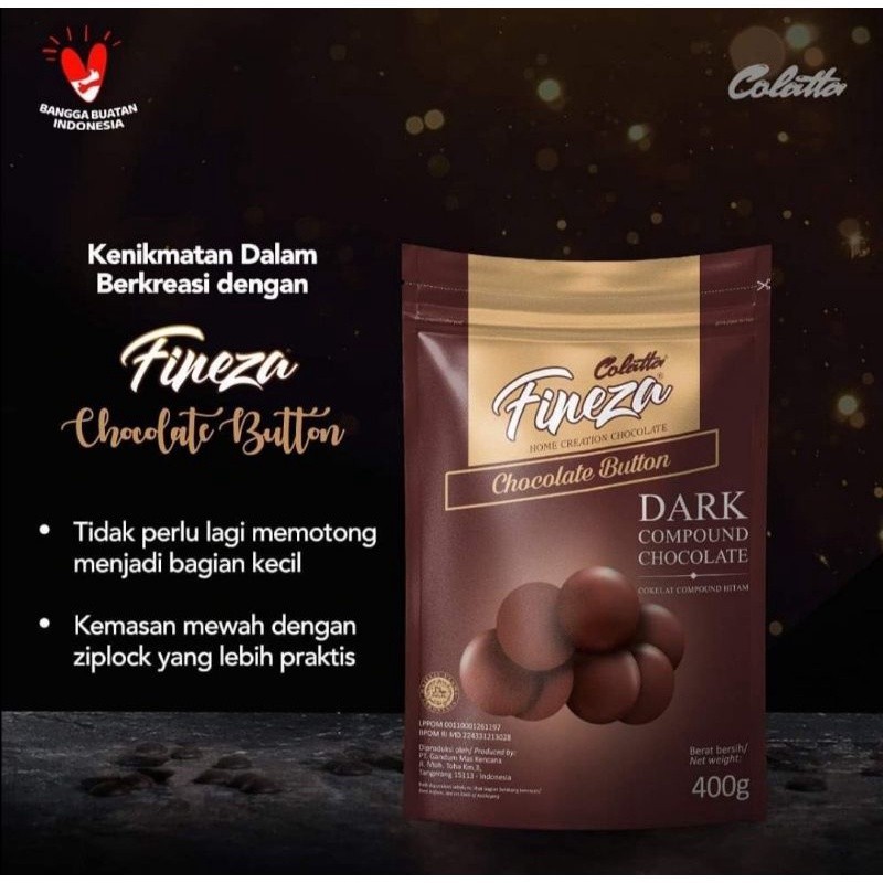 Dark Compound Chocolate Button / cokelat hitam berbentuk kancing tanpa proses potong membuat proses pelelehan cokelat lebih cepat dan mudah.