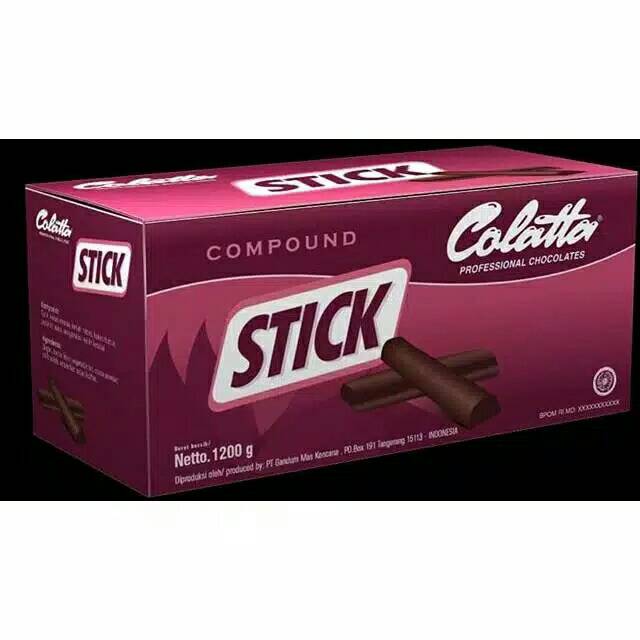 Colatta stick compound dibuat khusus dalam bentuk stick / batangan, dapat digunakan sebagai isian dan atau dekorasi berbagai macam kue, kue kering,kukis, pastry, croissant, dll