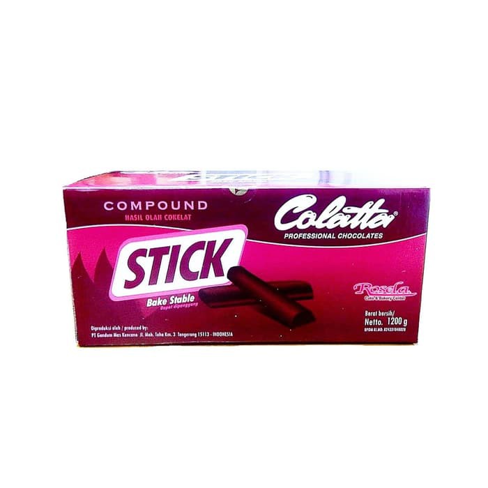 Coklat Colatta Stick Bake Stable merupakan coklat compound berbentuk batang / stick yang dapat digunakan untuk isi pastry, dekorasi cake, dll