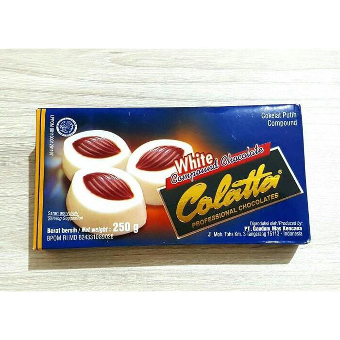 Colatta Professional Chocolate Compound diformulasikan secara khusus untuk penanganan cokelat yang mudah dan hasil yang terbaik. Sangat cocok untuk hiasan kue, dicetak, diserut, serta dibuat sebagai bahan isian / filling dan bahkan bisa langsung dimakan.