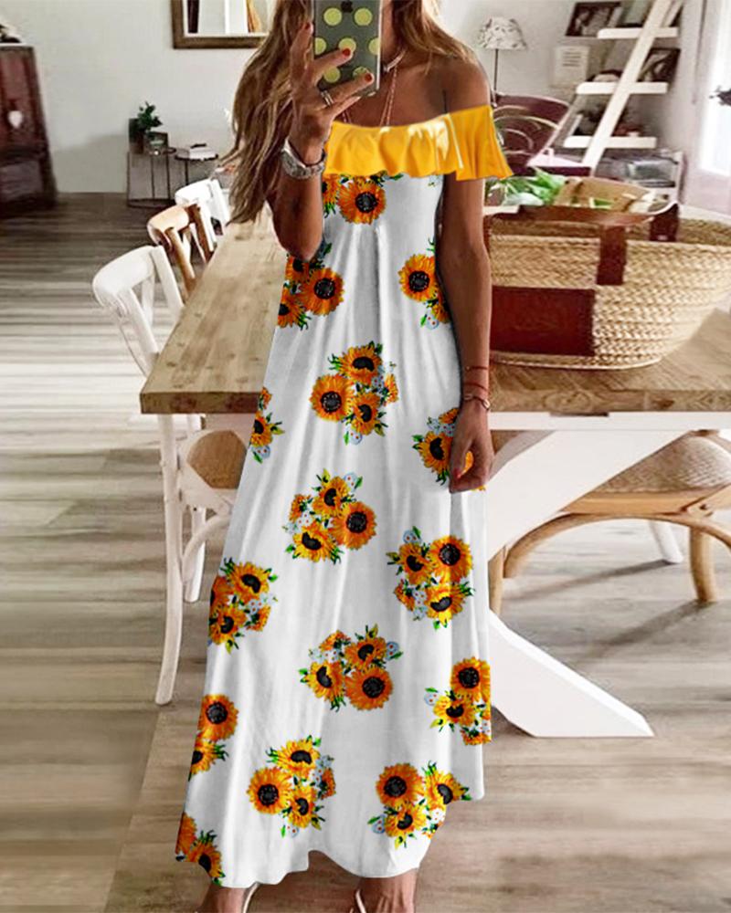 Cold Shoulder Colorblock Ruffle Maxi Dress, Yellow