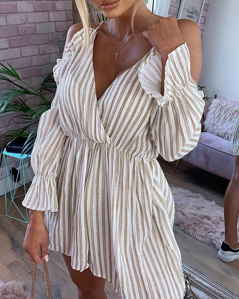 Cold Shoulder Ruffles Striped Romper